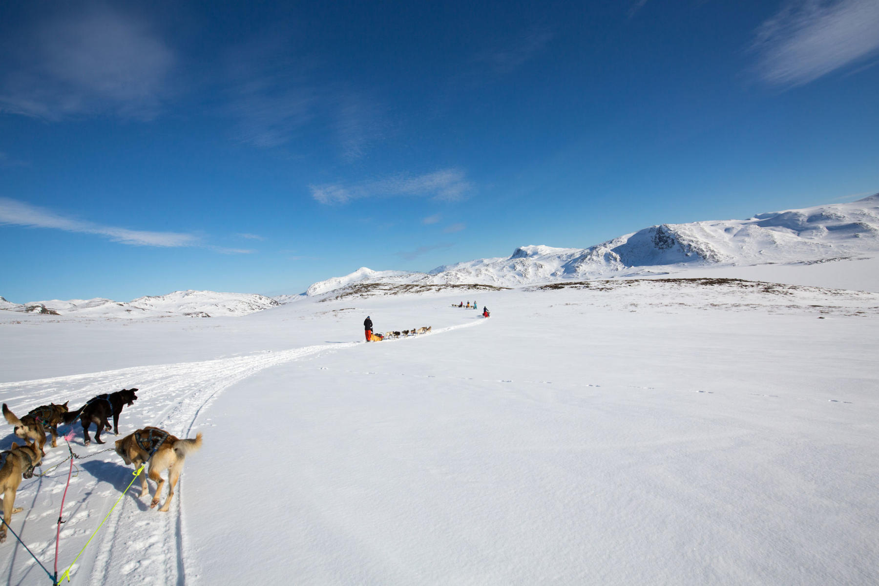 Meet-up is at Beito Husky Tours just south of Beitostølen. After arrival, we start with an introductory course where you become better acquainted with equipment and packing and also get to meet both the dogs we will take with us on the trip and the puppies/young dogs who are trained for later trips. During the day we will also go on a full-day training trip to learn more about how the dogs and the sled work together in nature. Dinner is served in the evening. After this, we will go through the final preparations before leaving for the wilderness tomorrow morning.