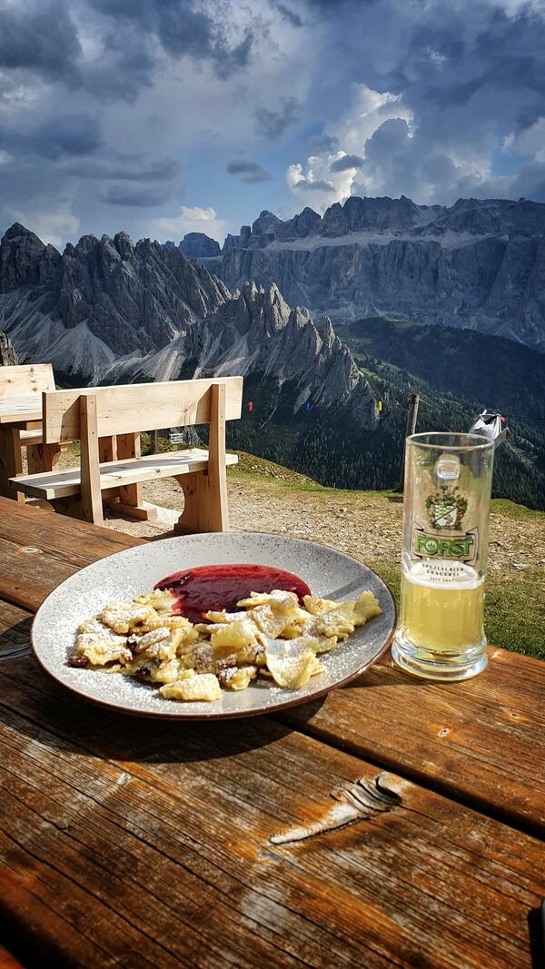 As we arrive in Selva di Val Gardena, we'll check into our hotel and join the rest of the group to commence our mountain biking adventure. Some of us will assemble our bikes at the hotel's bike workshop, while others pick up rentals from a nearby shop. With bikes ready, we have the evening to relax or explore the charming village before reconvening for a delightful dinner, setting the stage for the thrilling journey ahead. For more information on how to get to the starting point of the trip, see the “Additional information” section below.