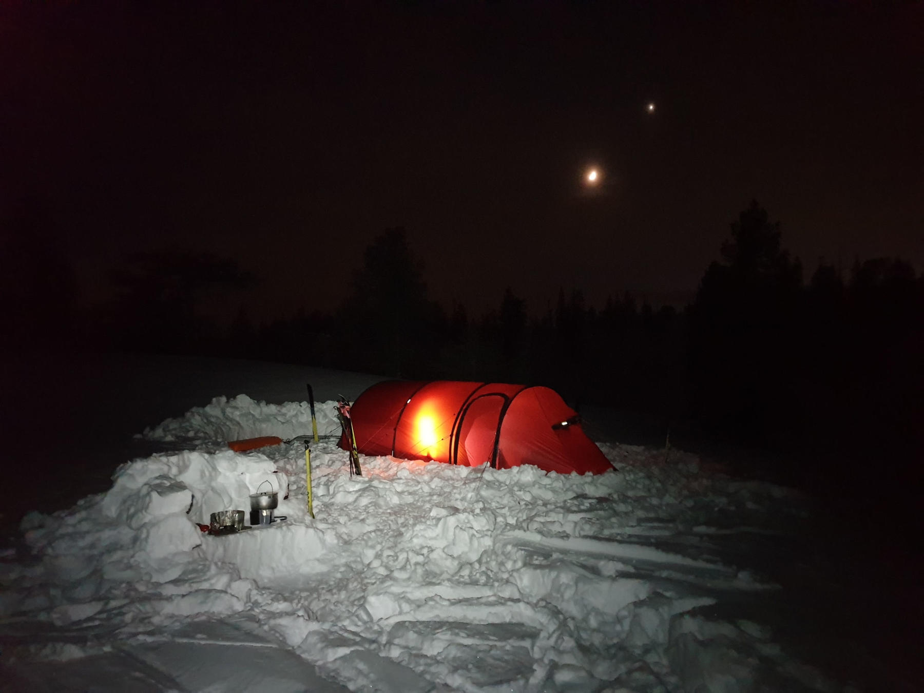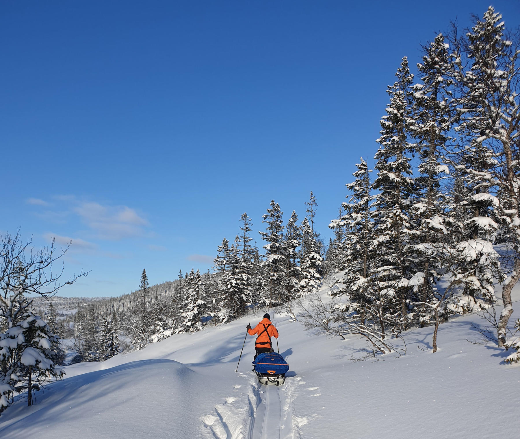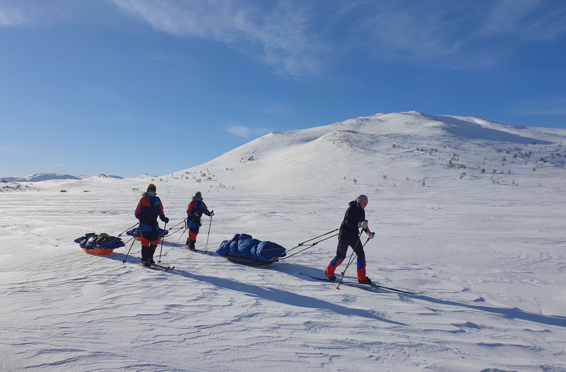 We meet at Vaernes Airport at 08:30 in the morning (you can take the night train both from the south and from the north and be there on time). You choose whether you want to spend the night at a nearby hotel or come the same day. We have a shared transport to Væktarstua, this takes about 1,5 hours. Here the adventure begins. Today's stage is 20 km long, and if the conditions permit, we will visit the Swedish border today, but we have everything we need in the sledge, so we will adapt the route as needed. We have a good lunch break along the way, and after we have set up camp we eat a simple but highly appreciated dinner.