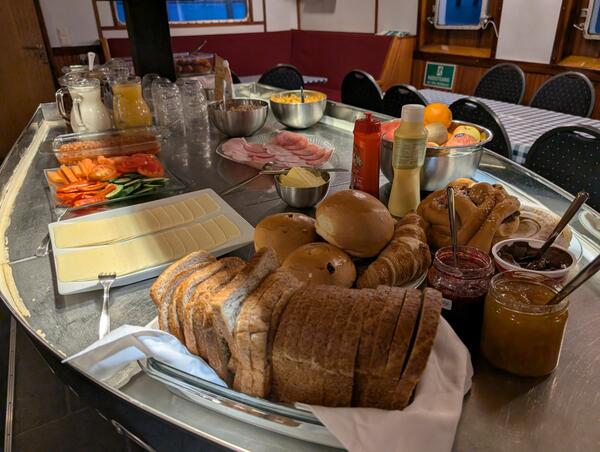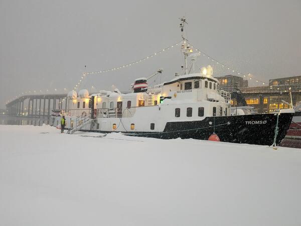 We will meet at the harbor in Tromsø at 6:00 PM. After everyone has settled into their cabins, we'll set course for tomorrow's destination. We'll get acquainted on the boat and with each other before enjoying a good dinner together.