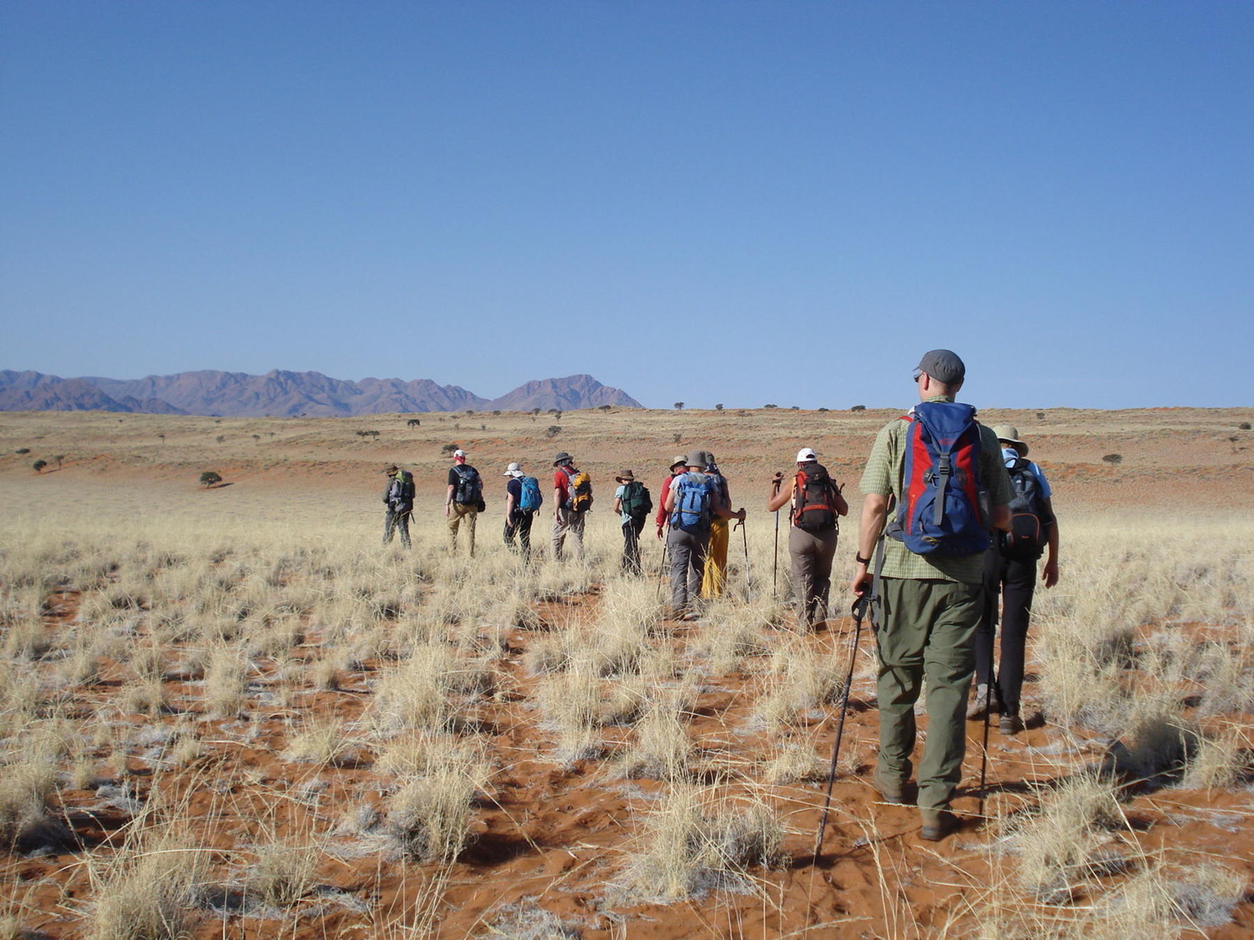 Vi vandrer i opptil 7-8 timer per dag, og flere dager over 2 mil. I Fish River Canyon bærer du sekken selv med bagasje for fire dager på campingtur. Vi må i tillegg bære mye vann. På ørkenvandringen får vi hjelp til å bære og du har kun dagstursekk. Terrenget er noe kupert, men stort sett ganske flatt, bortsett fra dagen i Naukluft-fjellene. Her går du kun med dagstursekk.