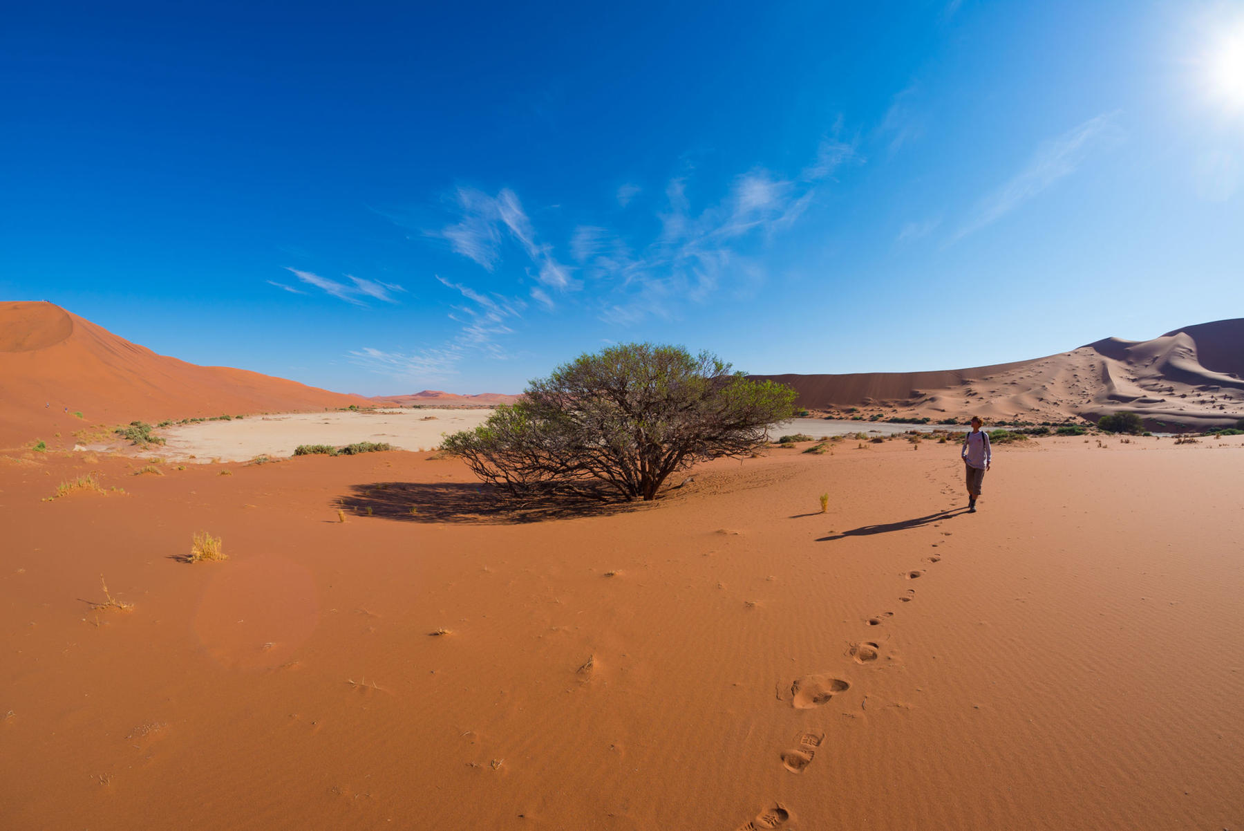 Vi starter i den storslagne Fish River Canyon - verdens nest største canyon. Det er kun et fåtall som får tillatelse til å vandre her per dag, så dette er en unik opplevelse. Underveis camper vi under åpen himmel hvor stjernene er så nærme at det virker som du kan berøre dem. Turen går videre til Namib-ørkenen, og fottur på den såkalte Tok Tokkie Trail. Dette er en eksklusiv vandring som må bestilles et år i forveien. Her kommer vi tett på den eksotiske ørkenen, fra fjellterreng til sanddyner, og vår erfarne guide introduserer oss til livet og skapningene i ørkenen. Om kvelden nyter vi en treretters middag og slapper vi av i camp til ørkenens magiske solnedgang. Vi opplever også de enorme, rustrøde sanddynene i Sossusvlei, og klatrer til toppen av en av verdens høyeste sanddyne - Big Daddy. Vi avslutter med fjelltur i Naukluft-fjellene, overnatting på safariresort, og safari i åpen jeep. Dette blir et eventyr!