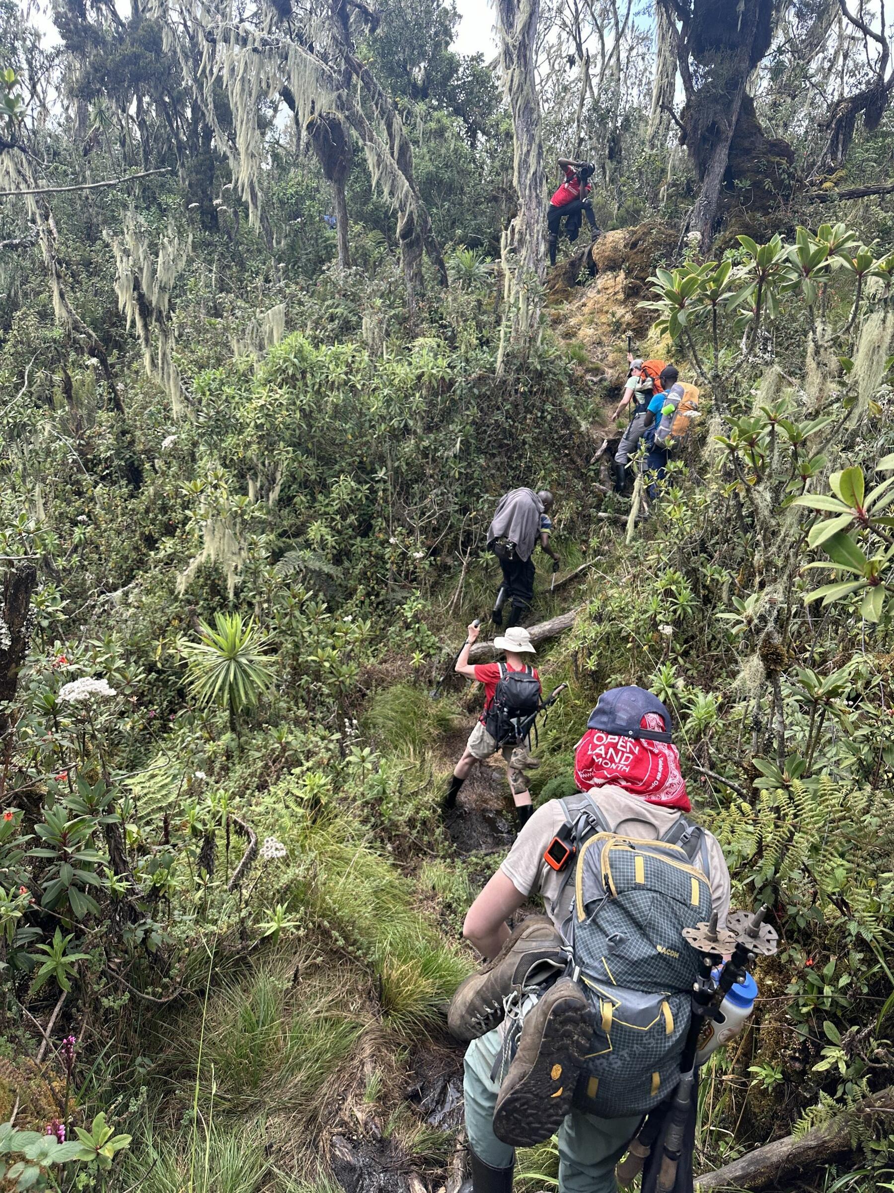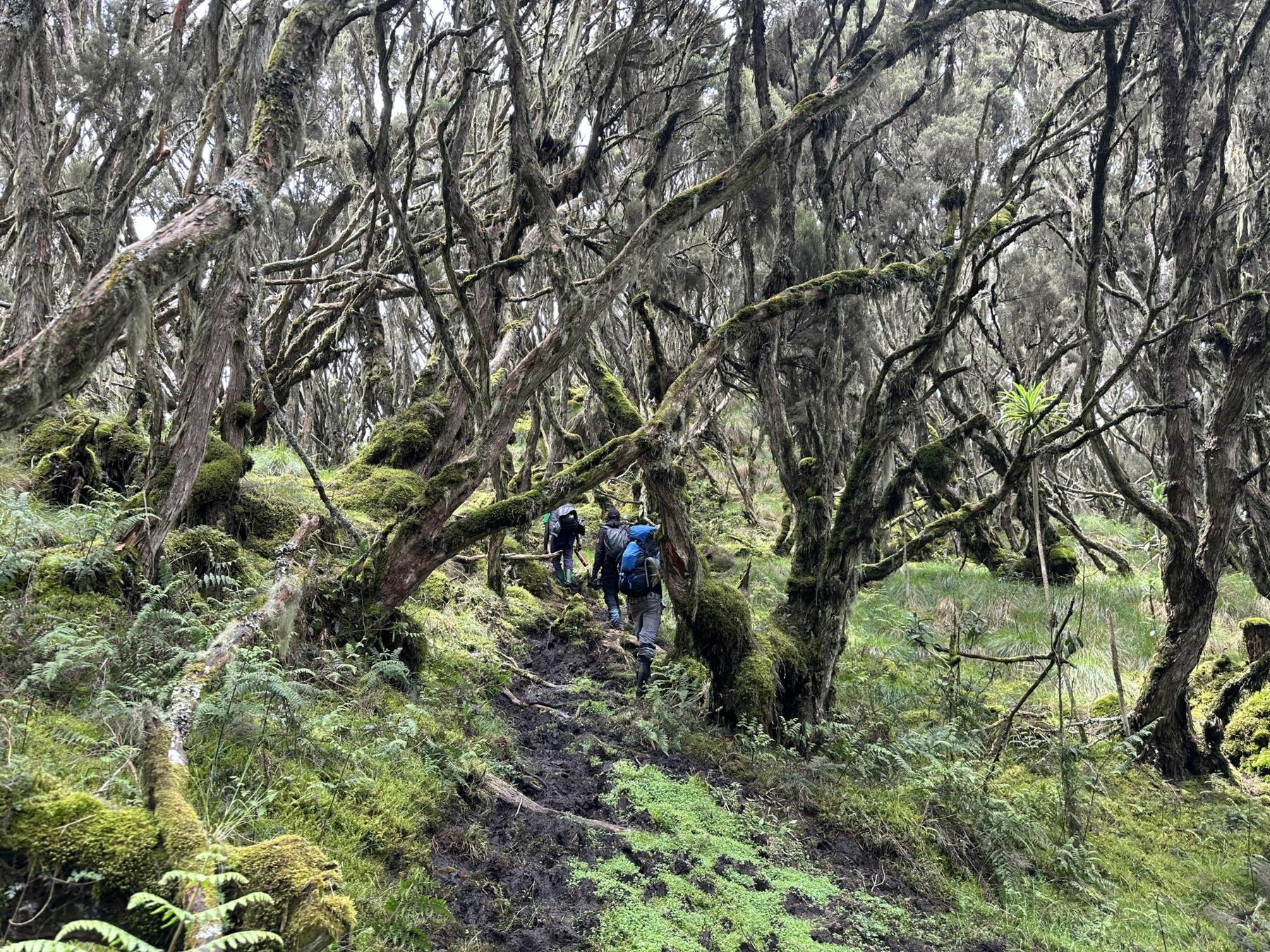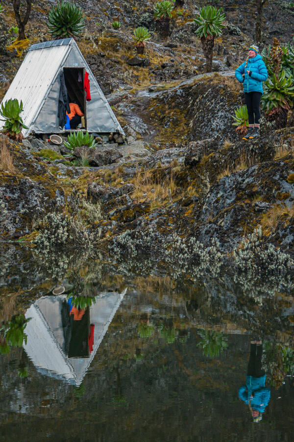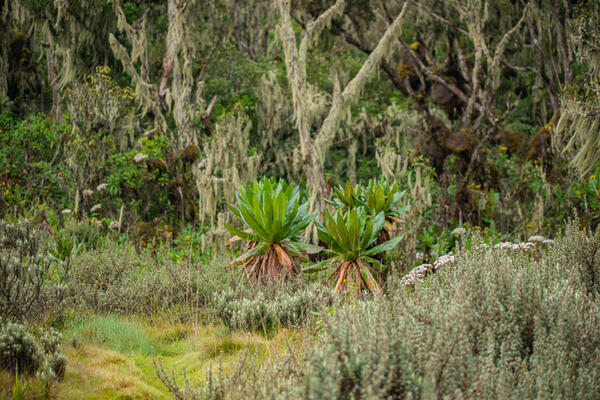 Vi fortsetter turen gjennom et landskap preget av røsslyngtrær med mosekledde grener, som skaper en trolsk stemning. Underveis opplever vi det unike plantelivet i Rwenzori, ofte omtalt som Afrikas botaniske "Big Five", med arter som kjempejohannesurt, kjempelobelia og kjempesvineblom. Vi tar en pause for en varm lunsj før vi fortsetter vandringen. Om ettermiddagen ankommer vi Kambeho Camp, hvor vi slår leir for natten.