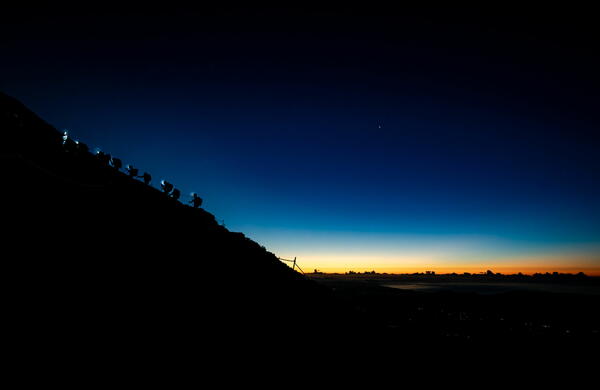 Vi bruker hodelykt på toppturen til Fuji-fjellet, mens vi begynner å gå mens det er mørkt.