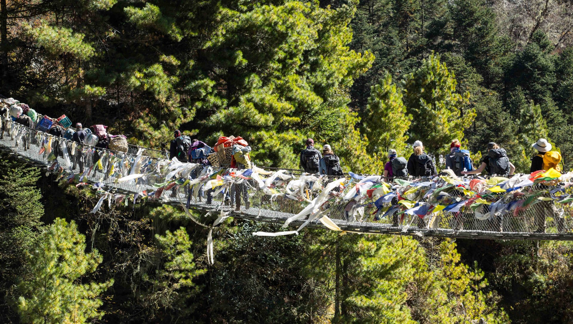 Vi passerer flere luftige hengebroer på veien, så de som har veldig høydeskrekk kan nok kjenne litt på det over disse broene, men vi tar det i rolig tempo.