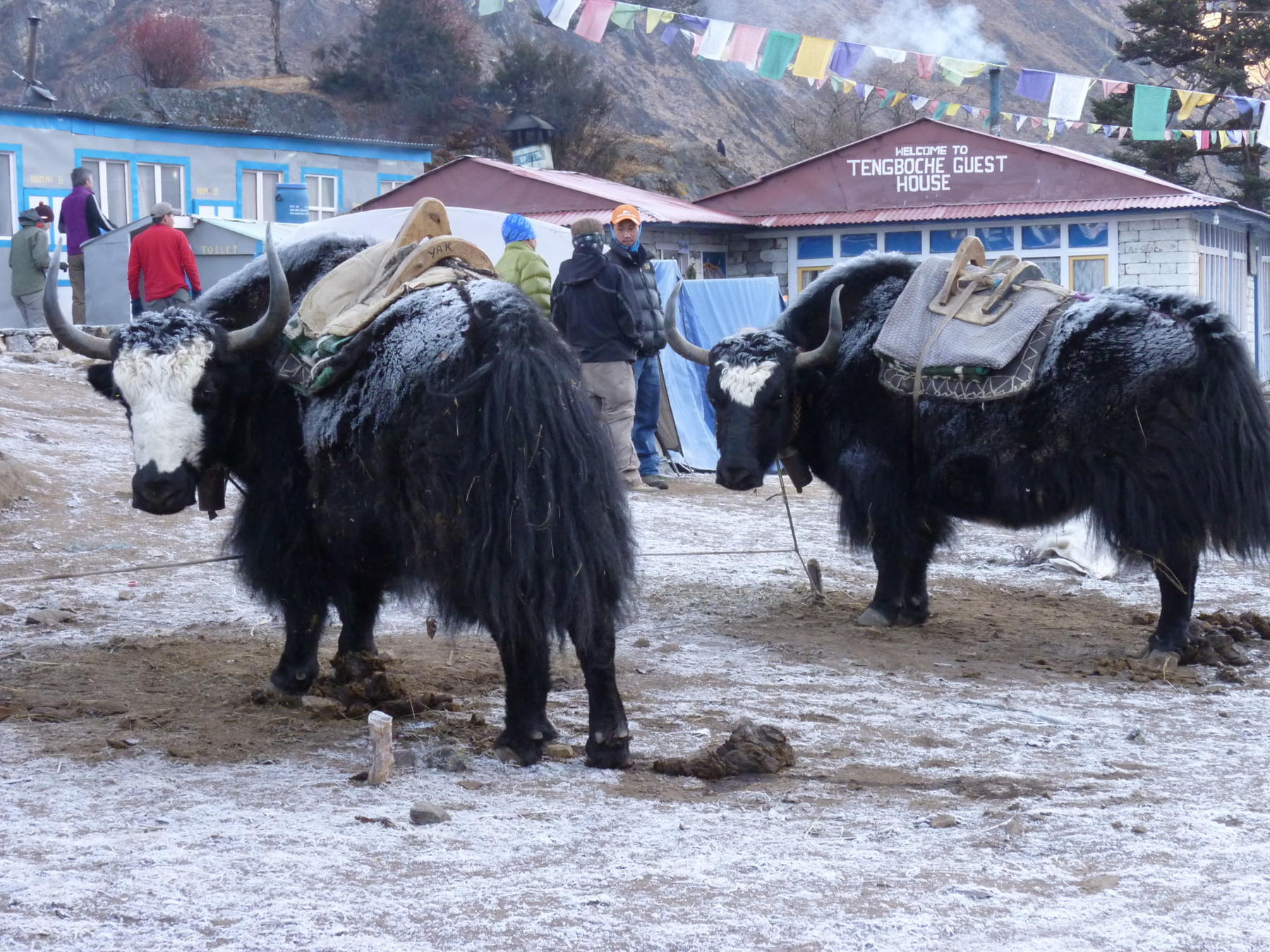 Engelsktalende, lokal Sirdar, lokale guider, kokker, mannskap og yakokser.