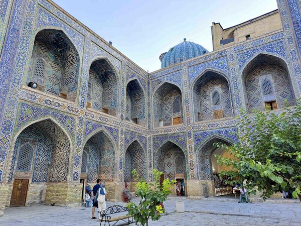 Dag 3 av tilleggsprogrammet: Vi tilbringer dagen med å utforske Tasjkent og starter med et besøk til Khast Imam-plassen – det åndelige hjertet av Tasjkent, som består av Barak Khan Madrassa (det administrative senteret til Muftien av Usbekistan, lederen av den offisielle islam i republikken), Tillya Sheykh-moskeen (som nå fungerer som distriktets fredagsmoské, med høydepunktet; den enorme Osman-Koranen, som hevdes å være verdens eldste), og Kafal Shashi-mausoleet (graven til en lokal lege, filosof og islamsk poet som levde fra 904 til 979). Vi skal også utforske Chorsu Bazaaren, Tasjkents berømte bondemarked; Uavhengighetsplassen, Amir Temur-plassen og Alisher Navoi-teaterplassen. I tillegg kan vi besøke Museet for Anvendt Kunst, som ligger i den tidligere residensen til den russiske diplomaten Polovtsev. En innholdsrik og mektig dag.