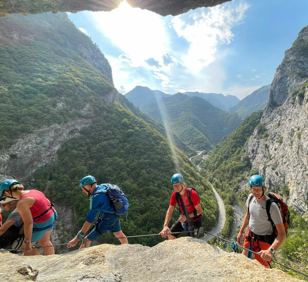 Ved ankomst hovedstaden Prishtina møter vi vår lokale guide og blir kjørt til fjellbyen Peja. Etter vi har innlosjert oss på hotellet drar vi avgårde på en spennende Via Ferrata i Rugova Canyon. Her har vi lagt opp til en litt enklere rute og en litt mer utfordrende rute som man kan velge mellom. Begge alternativene vil være med en sertifisert Via Ferrata guide. Ønsker du en litt roligere start på turen kan du tilbringe dagen med å utforske de historiske bydelene på egen hånd. Vi møtes igjen på kvelden for en hyggelig velkomstmiddag.