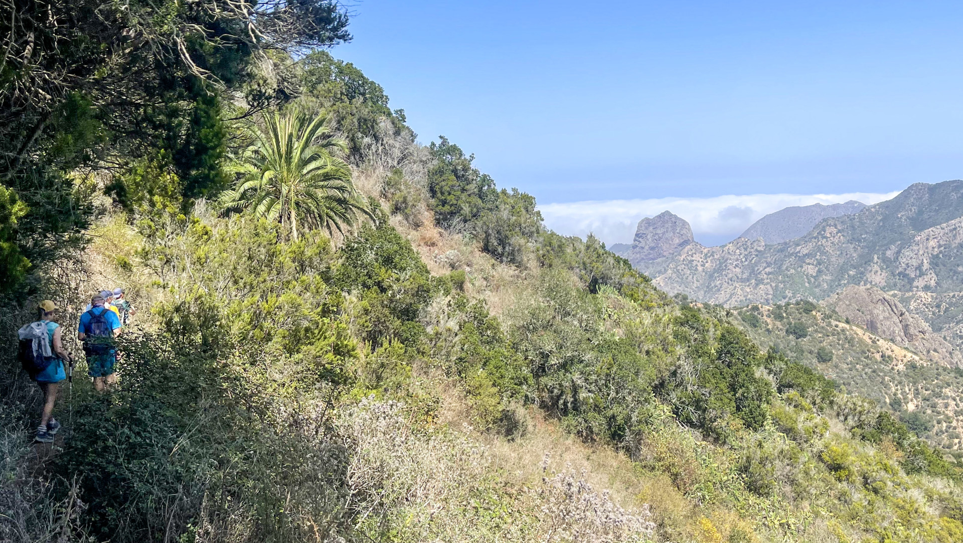 Vi reiser fra Gardermoen og lander på Tenerife Sør nesten 6 timer senere. Vi blir hentet i buss og kjørt til ferjeterminalen hvor vi tar ferge 45 minutter over til La Gomera. Er vi heldige ser vi kanskje delfiner som hopper og spretter i havet. Ved ankomst på La Gomera blir bagasjen vår fraktet til hotellet, mens vi strekker på stive og støle lemmer etter reisen og går 10 minutter til hotellet. Vi ankommer relativt sent, så vi går rett til middag ved ankomst hotellet. Etter måltidet tar guiden en gjennomgang av programmet vårt for de neste dagene.