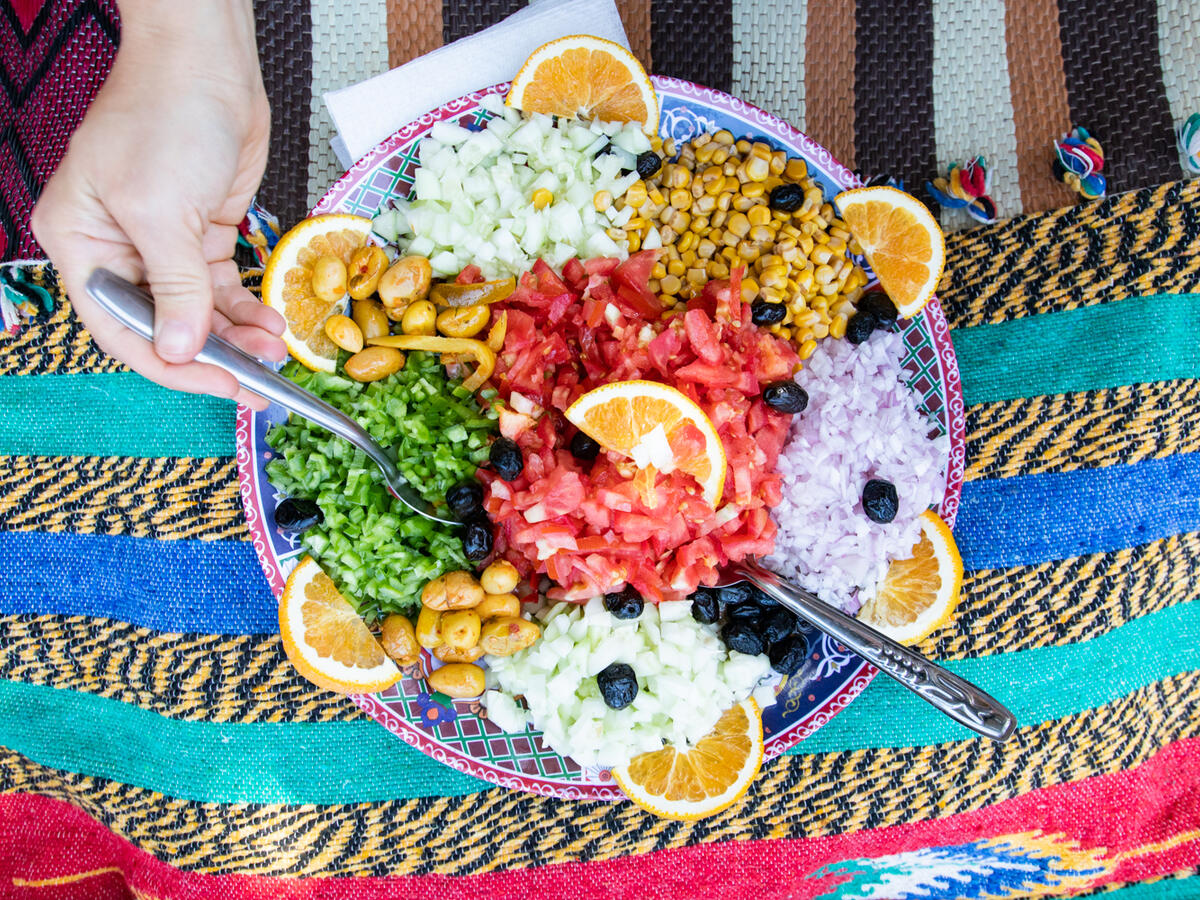 Fargene er vakre, det grå glir over i grønt og rødt, og naturen rundt oss minner meg om en dus regnbue. Etter noen timers vandring kommer vi frem til berberlandsbyen vi skal bo i. Her blir vi møtt med nypoppet popcorn, berber-te og deilig innbakte småretter ute på terrassen. For ikke å snakke om den nydelige utsikten! Vi skal teste hamam for første gang, og stemningen øker i takt med temperaturen på vannet vi heller over oss. Natten byr på en klassisk sovesal-stemning og jeg sovner (til slutt) til lyden av snorking inne, og hunder som gjør utenfor.