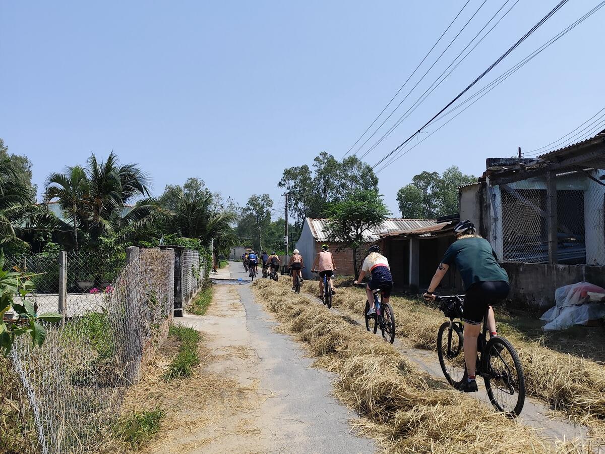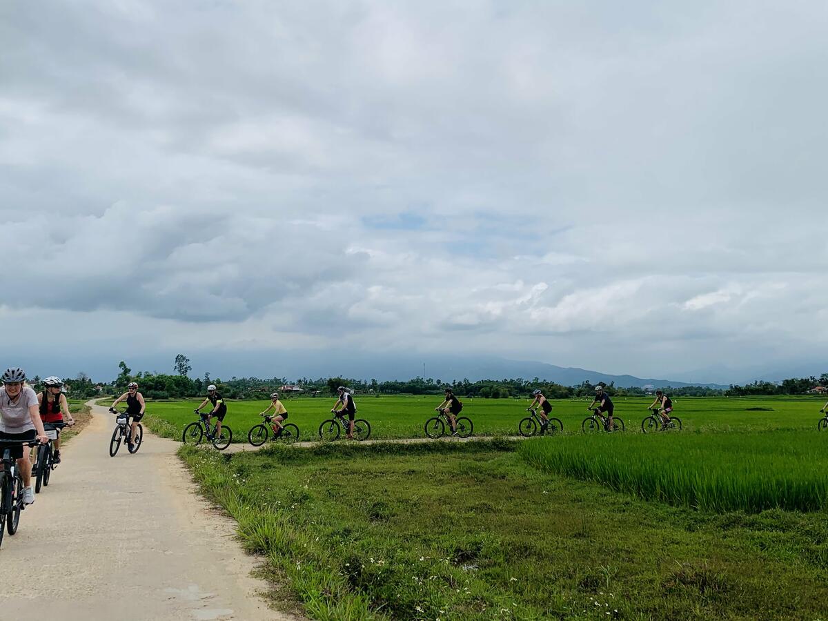 Vel fremme i Huế startet vi vår sykkeltur sørover langs Vietnams vakre kyst. Vi syklet langs hvite strender, gjennom frodig og grønt landskap, og forbi uendelige rismarker. Det var noe spesielt med å sykle gjennom små landsbyer hvor livet går sin vante gang; husdyr som høns, kuer, griser, og bøfler som vandrer langs veikantene. På sykkelen kunne vi stoppe når vi ville, ta bilder, eller bare nyte øyeblikket. Vi passerte også flere fiskelandsbyer hvor fargerike båter lå fortøyd, og fikk et glimt av hverdagslivet til de som bor langs kysten.