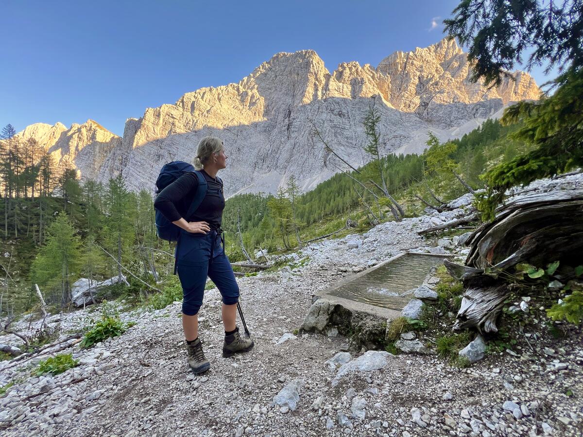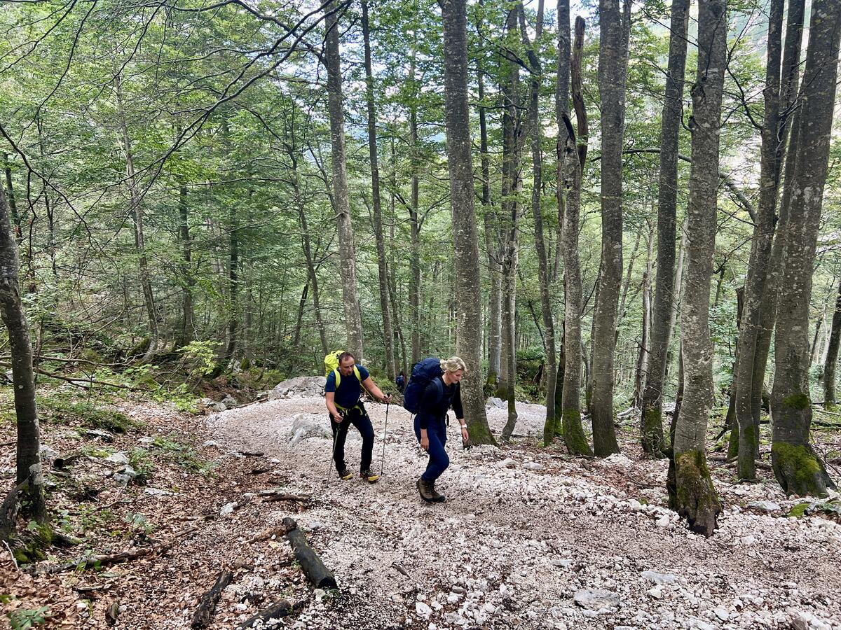 Vi satte kursen nedover fjellet mot Vodnikov Dom, en av fjellhyttene der vår kommende gruppe skal bo. Naturen endrer seg stadig, og kameraet går varmt. Vi fortsatte videre helt ned til der hvor bilen ventet. Neste stopp: en fortjent lunsj i Bled, på en Michelin-belønnet restaurant. Det var en ordentlig kontrast å gå fra fjell til hvit duk og vin. Slovenia har virkelig fått en plass på det gastronomiske verdenskartet, og vi forsto hvorfor. Videre dro vi til Roks hjemby og tok inn på et sjarmerende Bed & Breakfast. Endelig en dusj!