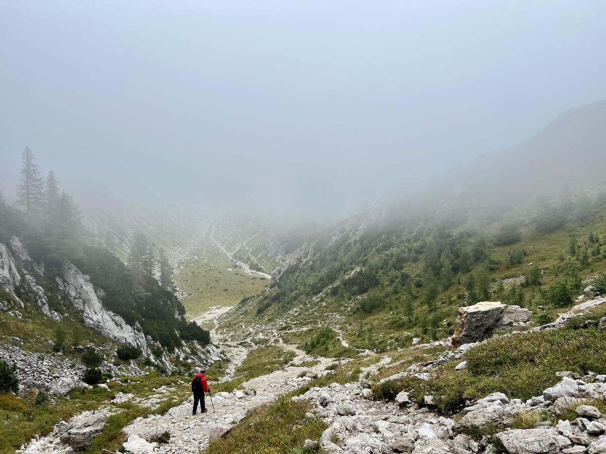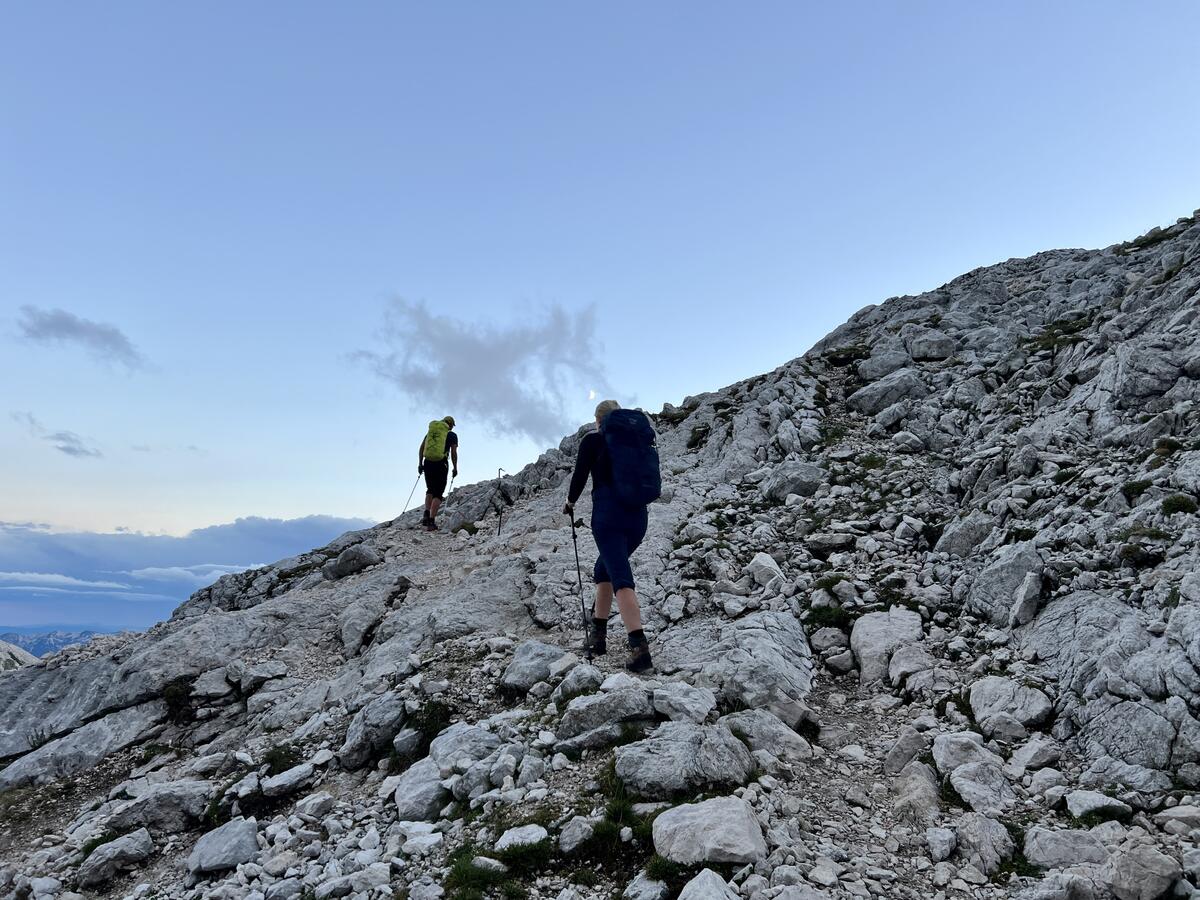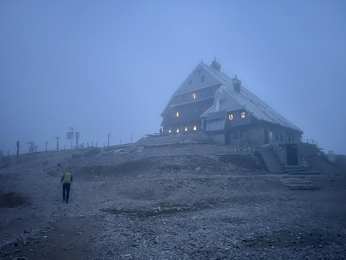 Etter å ha vært oppe siden klokken 04 og en flytur med mellomlanding, var det bare å bite tenna sammen. Vi skiftet utenfor bilen på skogsparkeringen, og startet med en gang på turen opp til Kredarica-hytta, 1600 høydemeter opp fra startpunktet vårt. I følge med Rok på 190cm og min kollega “aka” fjellgeit følte jeg vi løp oppover fjellet. Målet for kvelden, Kredarica hytta ligger rett under Triglav, Slovenias høyeste fjell. På vei opp hadde vi strålende sol og klar blå himmel, en magisk kontrast til de hvite kalksteinsfjellene som omkranset oss. Vel oppe på hytta etter en noe som kan beskrives som en 3 timers fjellmaraton begynte det å mørkne og tåken kom sigende.