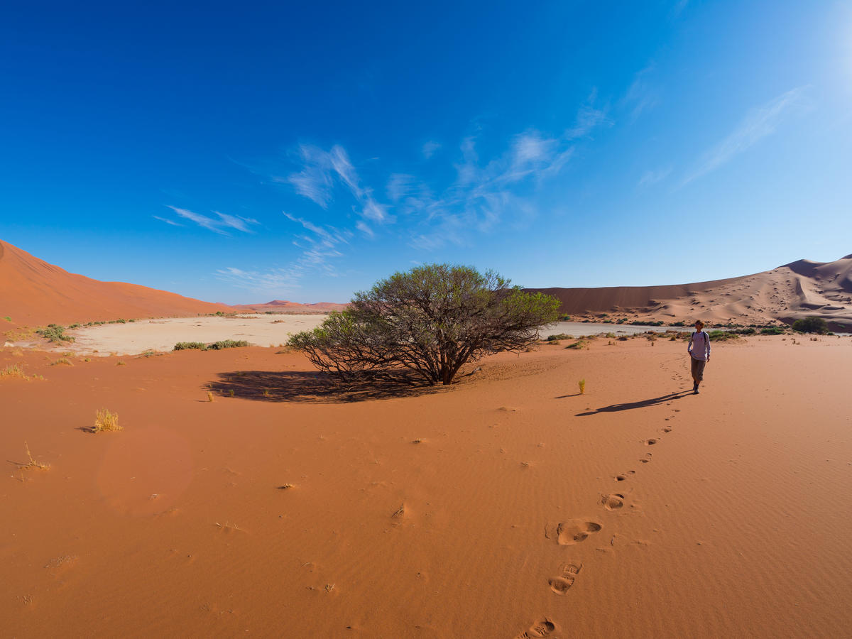 På vestsiden av det sørlige Afrika finner vi Namibia, et storslått rike med over 300 soldager i året. Her ligger verdens eldste ørken - Namib-ørkenen, en av de høyeste sanddynene som finnes - Big Daddy, og verdens nest største canyon - Fish River Canyon. I tillegg er Namibia kjent for sin spesielt mørke og klare himmel, som gir et astronomisk paradis, samt magiske solnedganger. Landet huser også noen av Afrikas største verneområder, som utgjør habitat for et mangfoldig dyreliv, og med en av de laveste befolkningstetthetene i verden i tillegg, finnes enorme uberørte områder å utforske. Det finnes ikke superlativer nok til å beskrive dette eventyrlandet! På denne turen drar vi på fottur i Fish River Canyon, går Tok Tokkie Trail i Namib-ørkenen, sover under åpen himmel og besøker de rustrøde sanddynene i Sossusvlei, ikke minst den største av dem alle - Big Daddy. Vi går også fjelltur i Naukluft-fjellene, bor på safariresort én natt og drar selvfølgelig på safari. Velkommen til eventyret!
