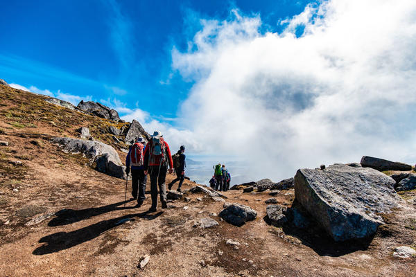 Deler av turen kan være krevende. Du må ha et godt treningsgrunnlag og god helse før avreise, og du må stå på for å nå målet.